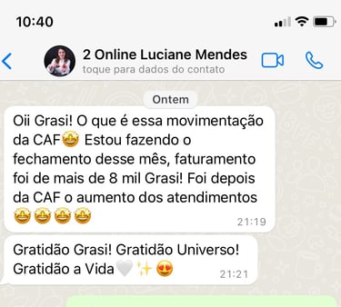 Criadora e idealizadora da CAF - Constelação de Alta Frequência, um método único e revolucionário que integra a Constelação Familiar de Bert Hellinger com os conhecimentos de David Hawkins, sobre os níveis de consciência e as emoções humanas. Possibilita trabalhar na INDEPENDÊNCIA EMOCIONAL e a ELEVAÇÃO da FREQUÊNCIA VIBRACIONAL.