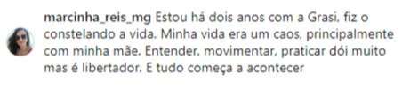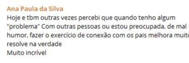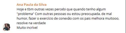 “Ela tomava as dores da minha mãe e não dava lugar para o pai, sempre foi uma pessoa irritada e explosiva. Depois de liberar muitos traumas e dores da infância com os exercícios sistêmicos, hoje consegue perceber a aproximação do pai tanto física como de alma e as relações familiares melhoraram muito quando assumiu o seu lugar de filha.”