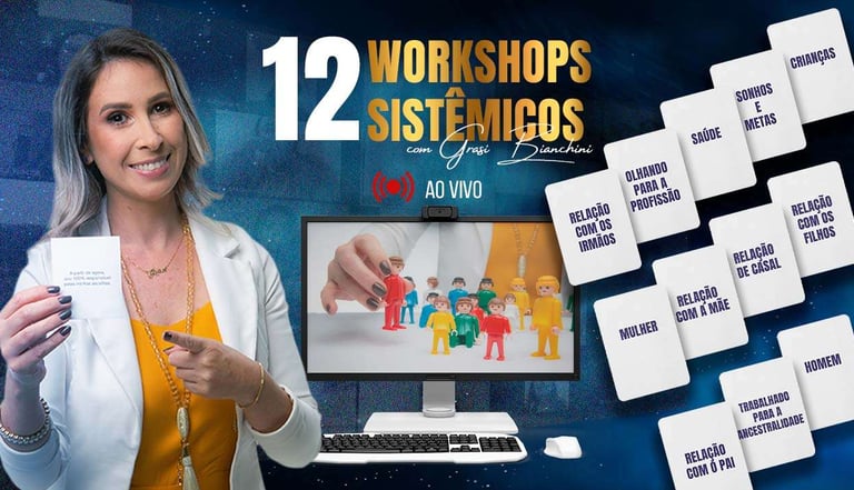E os incríveis Workshops AO VIVO mensais, com dinâmicas sistêmicas para trabalhar o sucesso e a realização na vida.